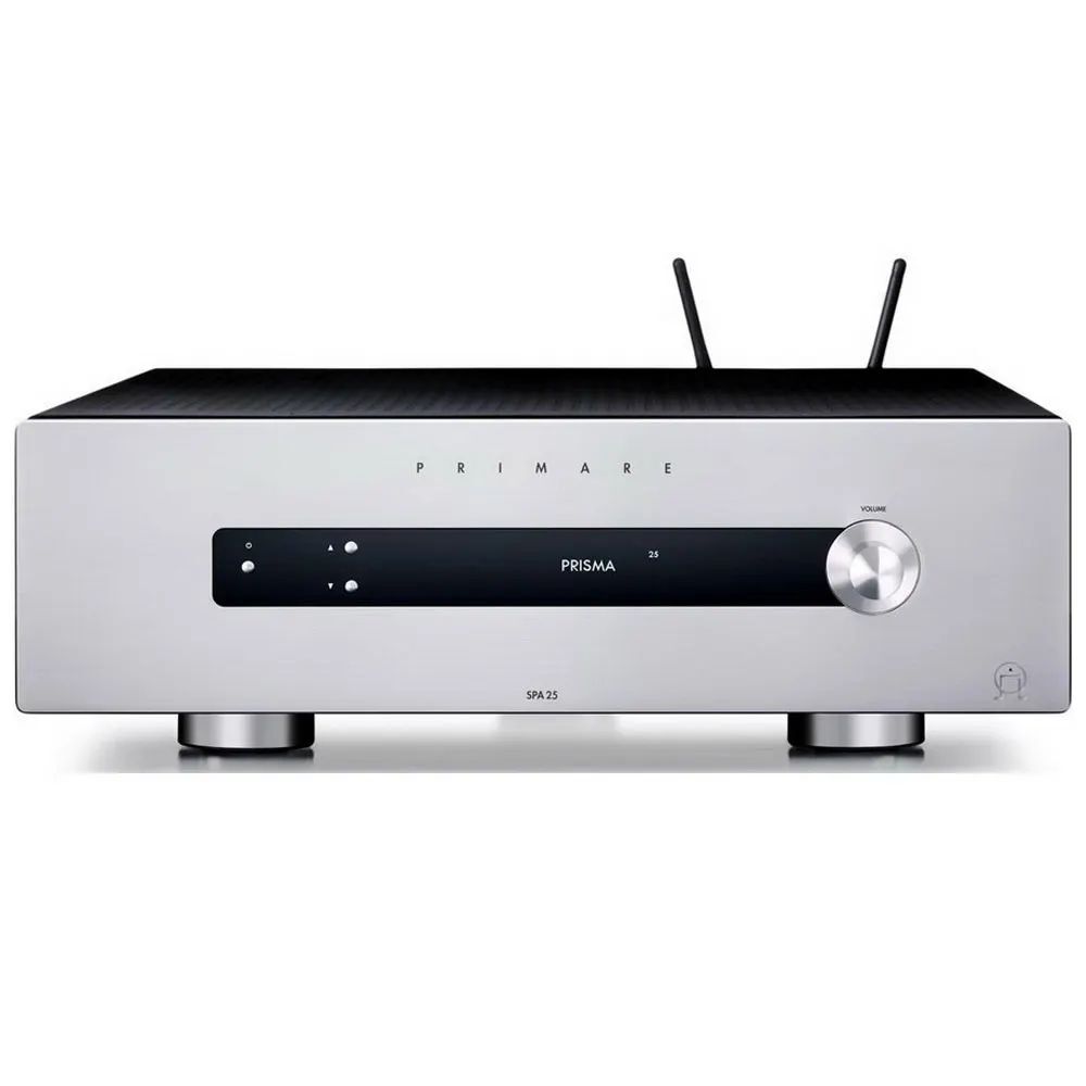 SPA25 — 9-канальный интегральный усилитель и процессор с поддержкой Atmos, DTS:X и фирменной технологией Dirac Live EQ, способный коммутировать видеосигналы 4K HDR, оснащенный интерфейсом HDMI с eARC и фирменной сетевой технологией Prisma. Модель укомплектована новым ИК-пультом ДУ, способным управлять любыми компонентами Primare, как выпущенными ранее, так и теми, что будут выходить позже.