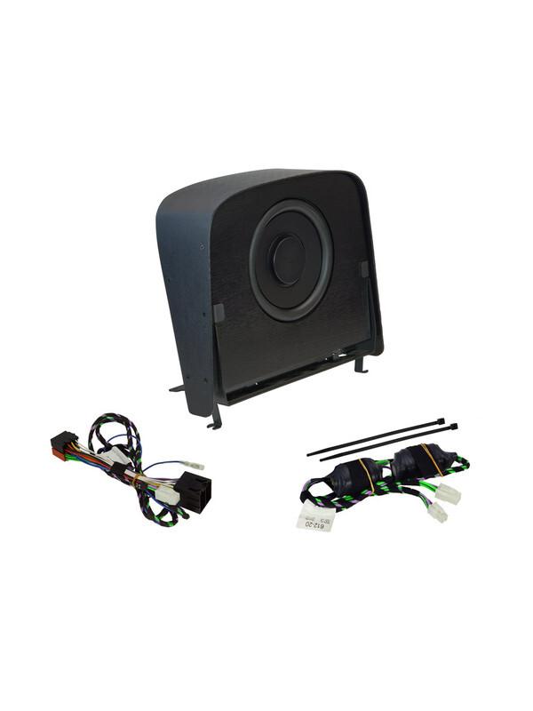 Прилагаемый стальной монтажный кронштейн крепится к конструкции центральной консоли под оригинальным подстаканником. Затем корпус сабвуфера вставляется спереди и идеально вписывается в центральную консоль. В комплект поставки входит жгут проводов для простого подключения к головному устройству по принципу "plug-and-play". Обратите внимание, что оригинальный подстаканник является обязательным для этой установки и также должен быть установлен, если изначально его изначально не было в комплектации.