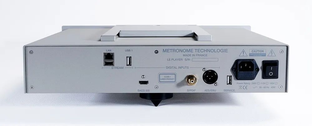 Métronome Le Player 4 — великолепный CD-транспорт, предполагающий самых искушённых потребителей музыки в CD формате. Механизм считывания записей с диска SUOS CD-Pro8S с оптическим модулем Sanyo HD850 OPU. В Métronome Le Player 4 интегрирована опция апсемплинга, обеспечивающая преобразование формата PCM до 384 кГц или DSD 128. Для получения частот дискретизации выше 192 кГц сигнал передается через цифровой выход I2S с разъемом HDMI. Аппарат весит 11 кг, оснащен 2 тороидальными трансформаторами, в которых использованы фильтры Шаффнера для защиты от электромагнитных и радиочастотных помех и выведены 4 отдельные независимые линии питания.