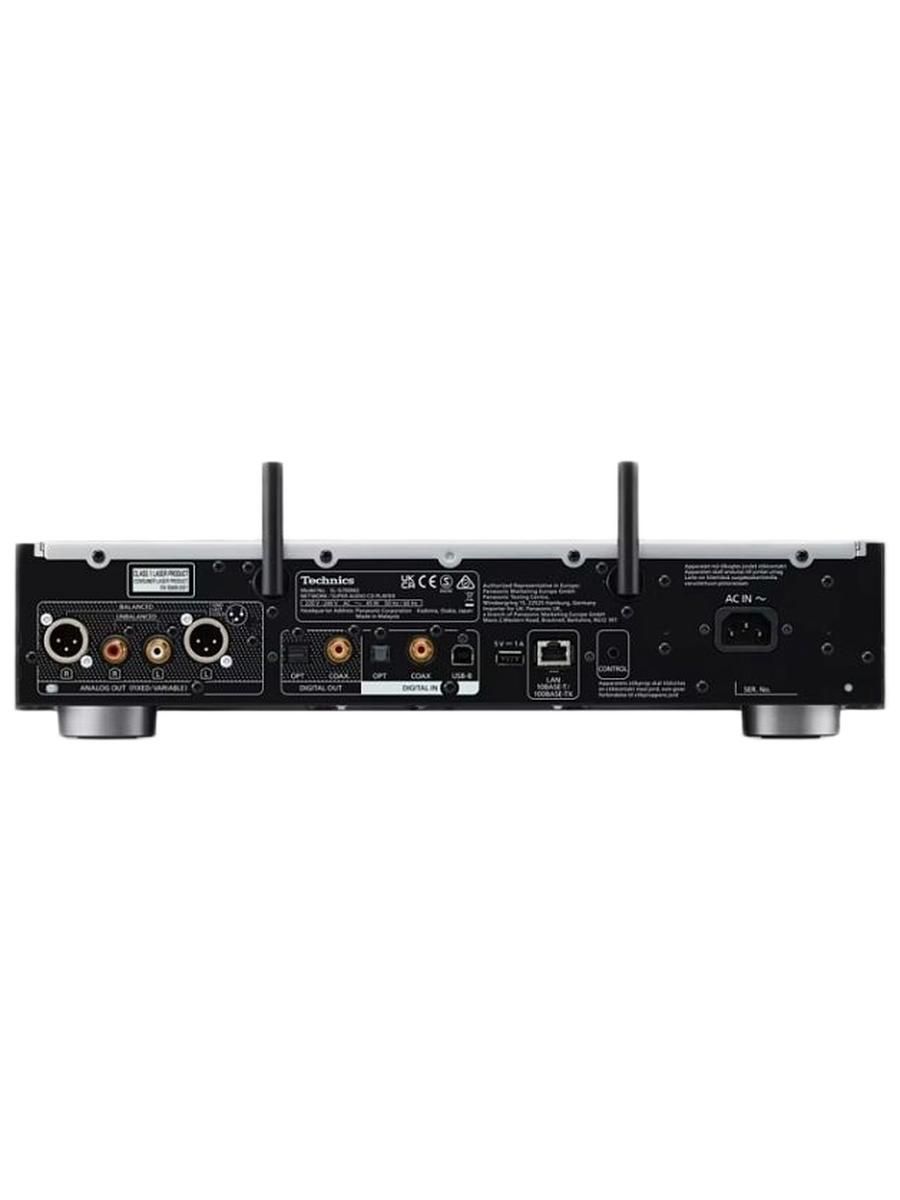 SACD/CD-проигрыватель Technics SL-G700M2 является универсальным устройством, которое станет единым цифровым источником в аудиосистеме меломана. Аппарат изготовлен на стальном шасси, а его боковые и фронтальная панели сделаны из алюминия (толщина последней составляет 7 мм). Транспортный механизм расположен по центру, что обеспечило равномерное распределение механической нагрузки и устранение резонансов. Лоток загрузки диска сделан из алюминия и обладает значительным весом для стабильного перемещения диска. Модель входит в серию Grand Class и отличается безукоризненным качеством изготовления и отделки. Кроме воспроизведения компакт-дисков Technics SL-G700M2 также можно использовать как ЦАП для внешних источников. С этой целью устройство оснащено коаксиальным, оптическим и USB-B входами. Схема конвертора в проигрывателе выполнена на базе микросхемы ES9026PRO в двойной моноконфигурации, которая обеспечивает обработку PCM-сигнала с параметрами до 32 бит/ 384 кГц и DSD до 11,2 МГц. Для получения максимальной точности воспроизведения CD-Audio сигнал с них подвергается конверсии до частоты дискретизации 192 кГц. Для прослушивания музыки с USB-накопителей в Technics SL-G700M2 имеется соответствующий интерфейс. Наиболее широкий доступ к различному аудиоконтенту в модели предоставляет стриминговая платформа с подключением к сети по Ethernet или Wi-Fi. Здесь есть поддержка DLNA, Chromecast, AirPlay2, популярных онлайн-сервисов. Предусмотрен в проигрывателе и Bluetooth, существенно упрощающий соединение с портативными устройствами. Аппарат способен воспроизводить файлы в форматах High resolution как с USB, так и по сети. Блок питания построен по схеме, исключающей помехи для аудиосигнала и отличающейся повышенной стабильностью. Technics SL-G700M2 оснащен балансными и небалансными выходами, сигнал на которых может иметь фиксированный или регулируемый уровень. В последнем случае проигрыватель можно подключать напрямую к усилителю мощности или активным колонкам, что делает систему более компактной. Для прослушивания музыки непосредственно с плеера предусмотрен высококачественный выход на наушники.