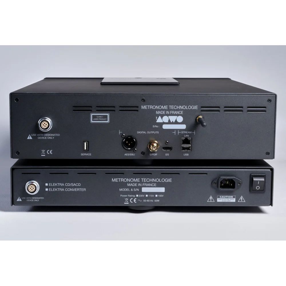 Métronome AQWO 2 собраны все функции в одной системе, а именно проигрыватель CD/SACD, цифро-аналоговый преобразователь и сетевой проигрыватель. AQWO 2 оснащен новым увеличенным сенсорным экраном диагональю 7 дюймов с соотношением сторон 21/9, позволяющим считывать данные на расстоянии и управлять настройками. Обработка сигнала осуществляется ЦАПом от специалиста ESS Technology Inc., а именно ЦАПом типа ESS ES9038Pro, который способен обрабатывать сигналы в линейном PCM с разрядностью до 32 бит и частотой 384 кГц и, таким образом, так называемый DXD, а также DSD до DSD512. При желании для достижения наилучшего качества может быть выполнена передискретизация. Основой является 3 или 4 (опция с ламповым выходным каскадом) тороидальных трансформатора с фильтрами Шаффнера, питание отдельных компонентов системы осуществляется десятью индивидуальными стабилизаторами напряжения.