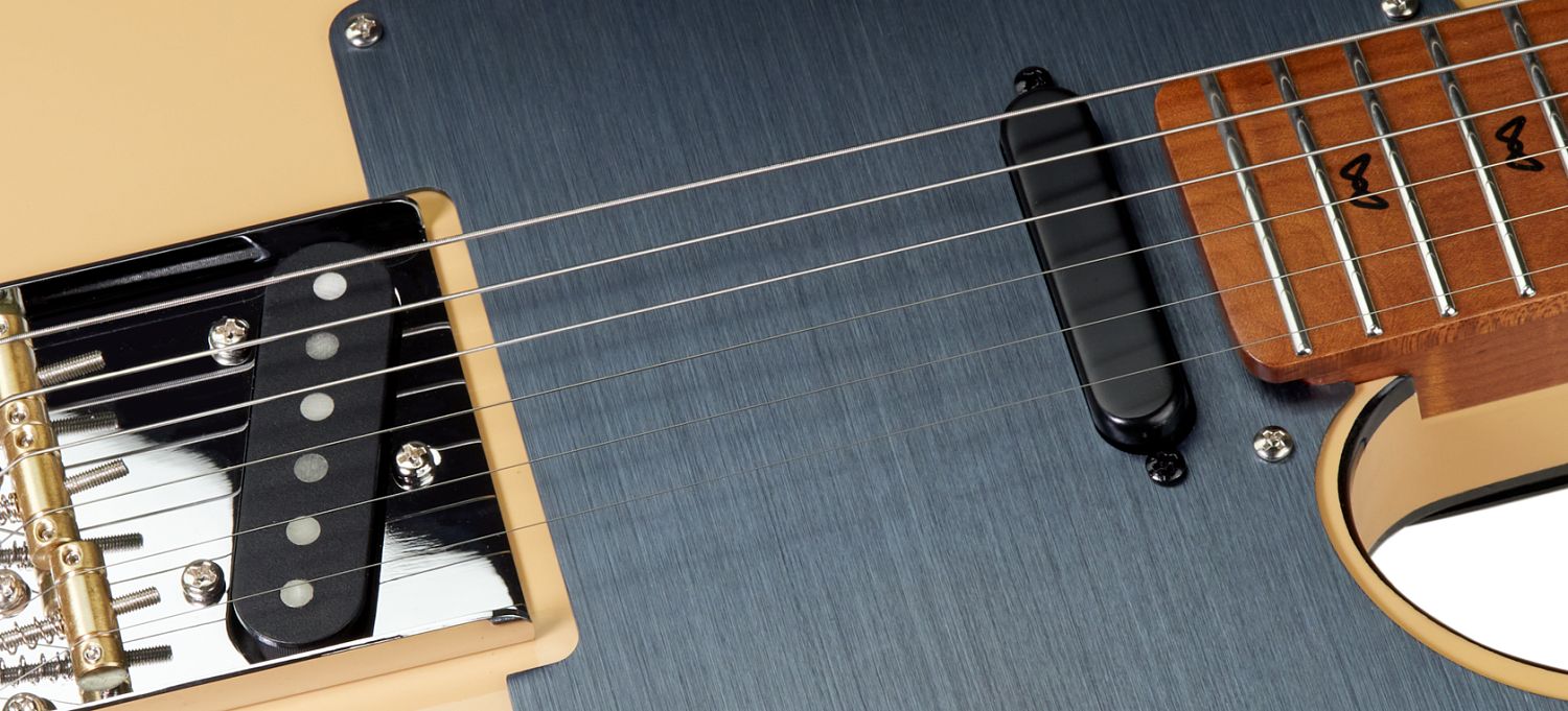 В качестве звукоснимателей здесь используются 2 сингла с классической Tele-конструкцией, которые обеспечивают яркое звучание с мощной атакой. Для переключения датчиков есть 3-позиционный свитч, а так же ручка громкости и тона. Бридж имеет фиксированную конструкцию с 3 седлами, а крепление струн осуществляется сквозь корпус.