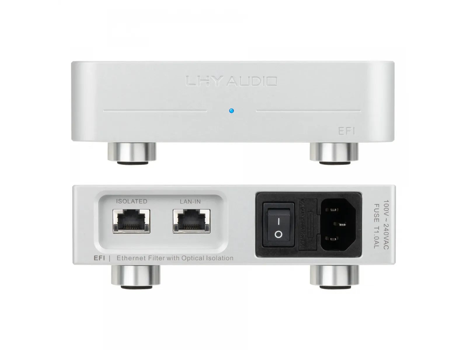 LHY Audio EFI — инновационный аудиофильский изолятор сети с полной оптической развязкой от бренда LHY Audio. Это компактное устройство заменяет сложную цепочку из двух медиаконвертеров, линейных блоков питания и оптоволокна, позволяя одним прибором создать чистую, изолированную сетевую среду для стриминга.