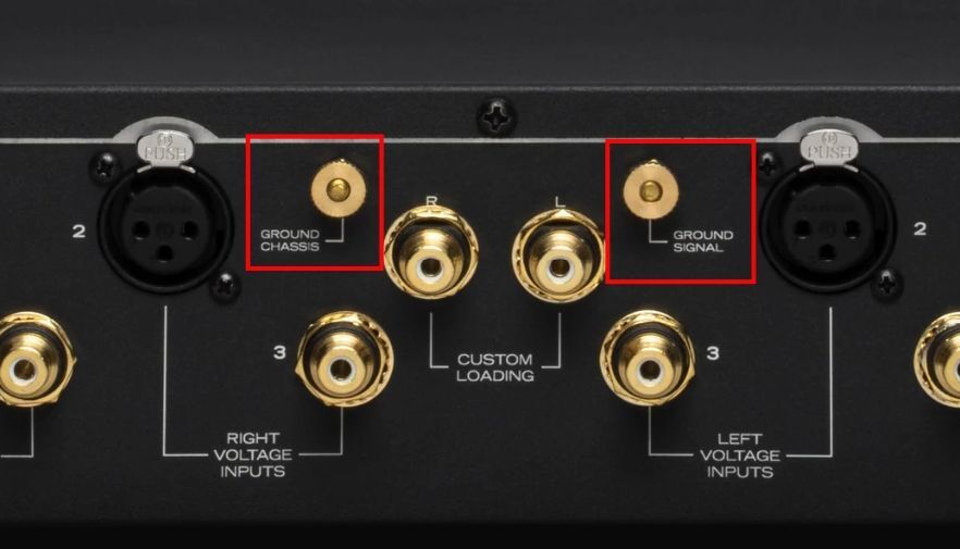 Заземление шасси: Используется для заземления проигрывателей с одним заземлением или для заземления моторного отсека или цоколя на проигрывателях с несколькими заземлениями.