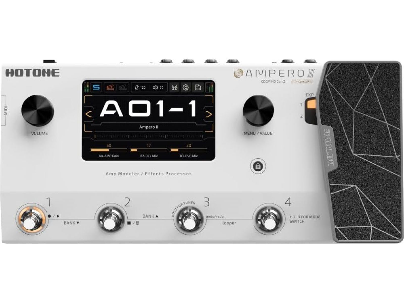 Ampero II — это комплексный блок эффектов, который органично сочетает в себе традиционные элементы с передовыми инновациями. Благодаря превосходной производительности, насыщенным тонам и интуитивно понятному взаимодействию он станет идеальным компаньоном для каждого музыканта и гитариста.