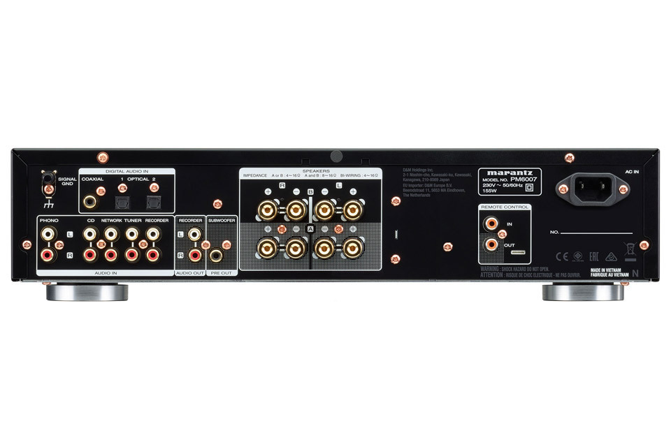 Аналоговые возможности дополнены цифровой коммутацией — есть один коаксиальный вход и два оптических.Полностью экранированный ЦАП AK4490, который обеспечивает разрешение до 24 бит/192 кГц, сменил устанавливавшийся в модели 6006 Cirrus Logic CS4398. Цифровую часть дополнили функцией режима цифрового фильтра. Кроме линейного стереовыхода, в PM6007 предусмотрен отдельный выход на сабвуфер и выход для подключения наушников.