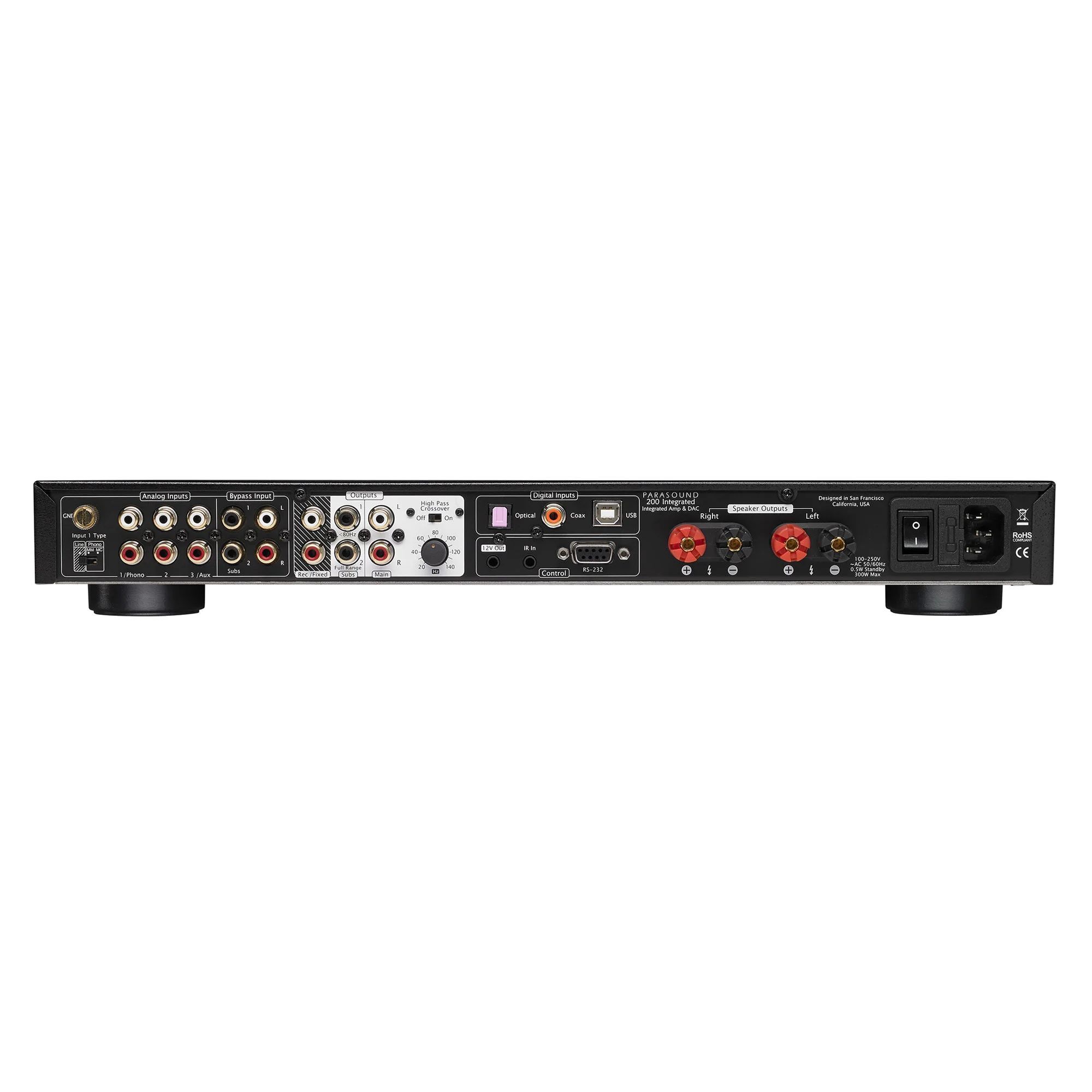 Parasound NewClassic 200 Integrated выдает 2 х 110 Вт на нагрузку в 8 Ом, оснащается фонокорректором ММ/МС, имеет полный набор входов (от RCA до оптики и коаксиала), интерфейс USB. В модуле цифро-аналогового преобразователя у Parasound NewClassic 200 Integrated используются проверенный и хорошо зарекомендовавшие себя микросхемы от Burr-Brown.