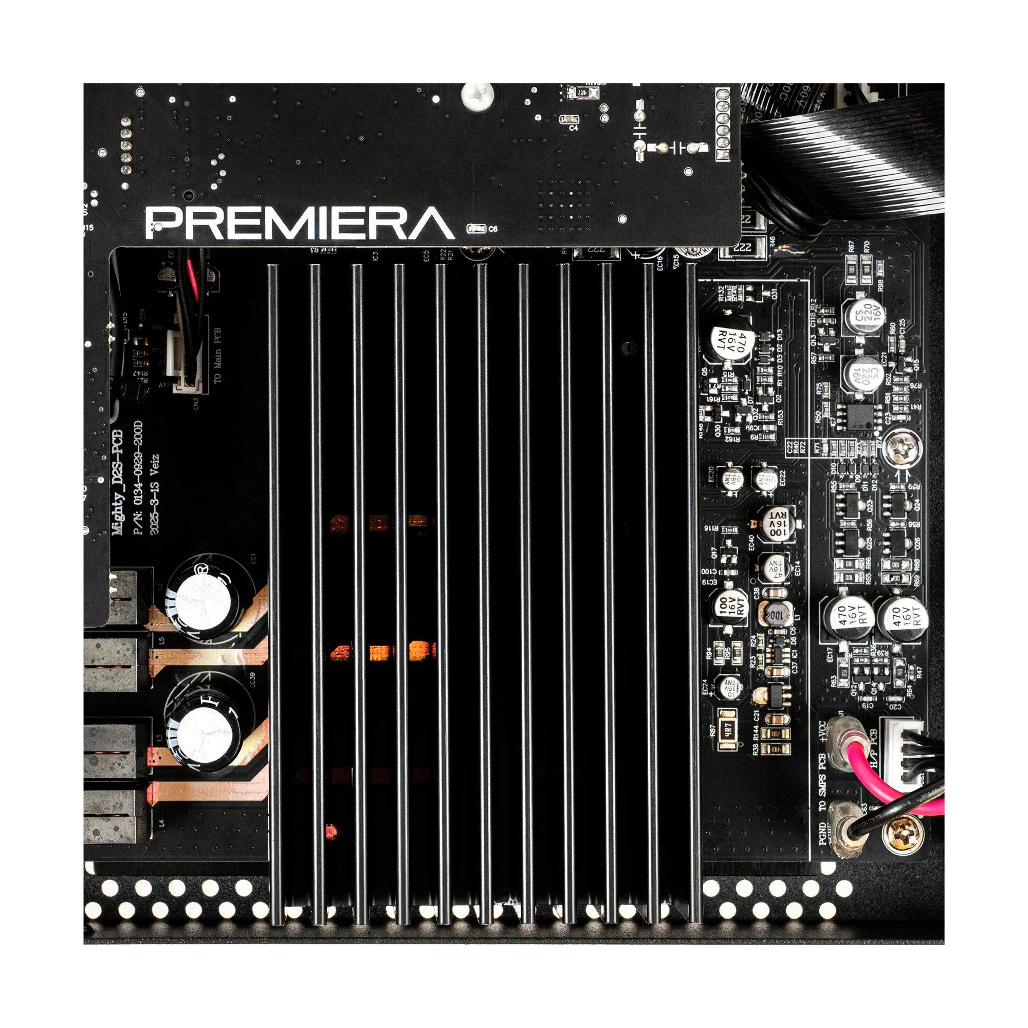 Выходные каскады Premiera D2S работают в классе D, где используется широтно-импульсная модуляция (ШИМ). Технология ШИМ обеспечивает компактному усилителю высокий КПД (около 90%), исключительную линейность АЧХ при воспроизведении широкого диапазона частот и низкий уровень искажений.