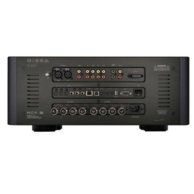 Интегрированный усилитель Michi X5 Series 2 отличается авторитетным и точным звучанием, выдавая до 600 Вт в классе AB на 4 Ом. У него внутри два массивных экранированных тороидальных трансформатора собственного производства с малым уровнем шумов. Оснащенный 8-канальным ЦАП ESS SABRE, этот усилитель воспроизводит музыку с захватывающей точностью и проникновенностью.Наличие множества входов обеспечивает поддержку ваших любимых музыкальных источников, в том числе аналоговых RCA и XLR-балансных, коаксиальных, оптических, Bluetooth с aptX HD, PC-USB с поддержкой MQA (24-бит 384 кГц), PCM (32-бит 384 кГц) и DSD 4X (11,2 МГц), а также фонокорректор с возможность выбора типа картриджей ММ или МС - для любителей винила.Мощность и элегантностьИнтегральный усилитель Michi X5 Series 2 выдает звук бескомпромиссного качества, обладая множеством входов для аудио источников, включая аналоговые, цифровые, XLR, PC-USB, XLR, Bluetooth и вход фонокорректора для MM картриджей — для поклонников винила. Превосходство X5 Series в звучании достигается за счет внедрения инноваций и критического инженерного анализа каждой схемы, путей сигналов и аудио компонентов, гарантируя, что за изысканным индустриальным дизайном скрывается захватывающее дух качество звука. Michi X5 Series 2 заключён в элегантный корпус индустриального дизайна и выдает по 600 Вт мощности в классе AB на 4-омные колонки. Его звучание отличается превосходной музыкальной точностью и исключительной акустической детальностью.Прецизионный ЦАПЦАП высокого класса от компании Sabre с разрешением 32 бит / 384 кГц осуществляет критически важное преобразование цифрового сигнала в аналоговую форму, дополнен тщательно подобранными вручную элементами во всех важных аудио цепях и бесценным опытом создания аудио компонентов в течение более 58 лет. Бесчисленные часы прослушивания и строгое стендовое тестирование гарантируют, что X5 Series 2 без особых усилий выполнит свое обещание точно передать всю выразительность музыкальных произведений — именно так, как это должен делать бренд Michi.Широкие возможности коммуникацийУсилитель X5 Series 2 оснащен множеством функций для бесшовной интеграции в любые аудио системы. На задней панели имеются разъемы для кабельных соединений плюс два комплекта фирменных колоночных клемм Michi с родиевым покрытием, которые обеспечивают беспроблемное подсоединение любых акустических систем, в том числе би-ваерингом. Органы управления и дисплей высокого разрешения на передней панели гарантируют легкость работы и простоту конфигурирования с использованием пульта ДУ Michi. Тороидальный силовой трансформатор собственного производства с большим запасом мощности, высоким КПД и ультра-низким шумом, а также независимые стабилизаторы для изолирования цифровой, аналоговой секций и каскадов усиления мощности, устраняют нежелательные шумы или искажения, помогая улучшить качество звука. Благодаря разъемам RS232 и Ethernet возможна простая интеграция в популярные системы управления, а также обновление программного обеспечения через Интернет или с USB флеш-накопителей.Будь вы просто любителем музыки, аудиофилом или профессиональным звукорежиссером, интегрированный усилитель Michi X5 Series 2 разработан специально для вас и тщательно изготовлен в соответствии с самыми высокими стандартами качества. Выполненный в изысканном, элегантном и грациозном индустриально