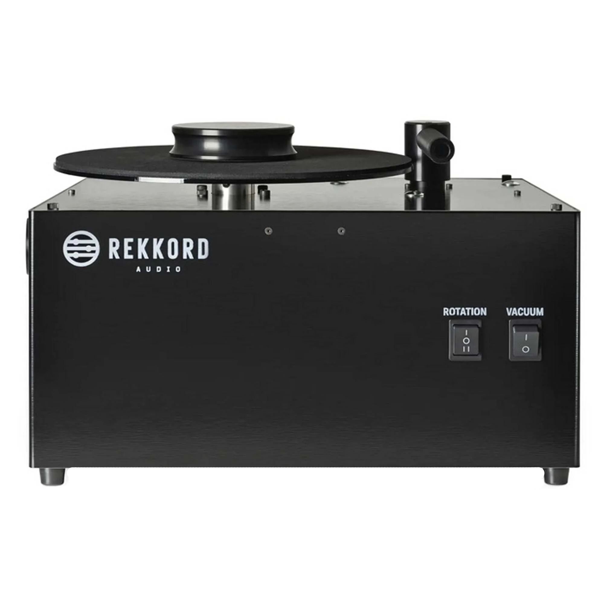 Корпус новинки выполнен из алюминиевых панелей чёрного цвета толщиной 4 мм, что обеспечивает необходимую жесткость конструкции. При габаритах 418 x 269 x 328 мм весит машинка внушительные 8.6 кг. Опорой для пластинки служит металлический диск, на который нанесен слой микропористой резины, способной впитывать любые жидкости, благодаря чему нижняя сторона грампластинки остается сухой и чистой. Тяжелая шайба, наворачиваемая сверху, надежно удерживает пластинку на Rekkord Audio во время очистки, гарантируя, что всасывающий модуль равномерно удалит чистящую жидкость со всей поверхности грампластинки.