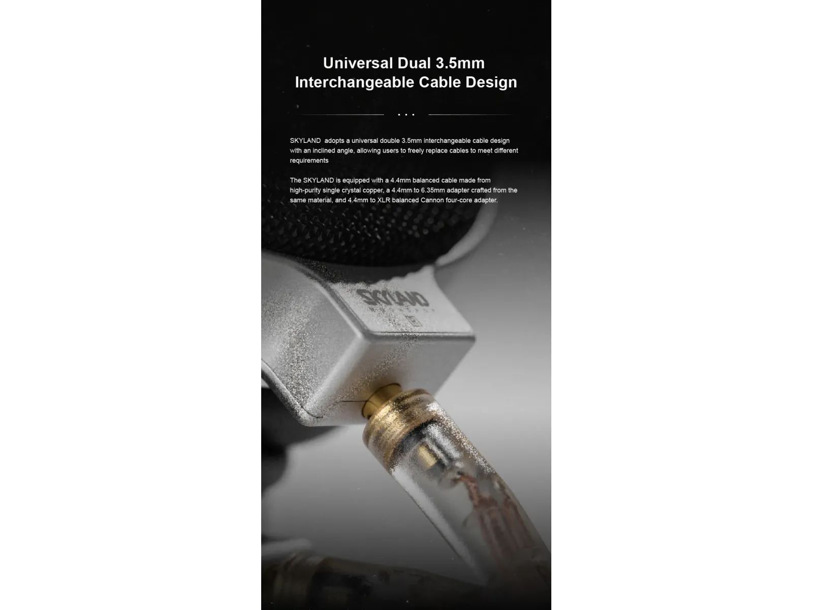 Комфорт: карбоновое оголовье с эластичной подвеской, мягкие амбушюры и сбалансированное распределение веса для длительных сессий. Съёмный кабель с двойными 3,5 мм разъёмами, в комплекте 4,4 мм балансный кабель из монокристаллической меди, адаптеры на 6,35 мм и XLR, алюминиевый кейс.