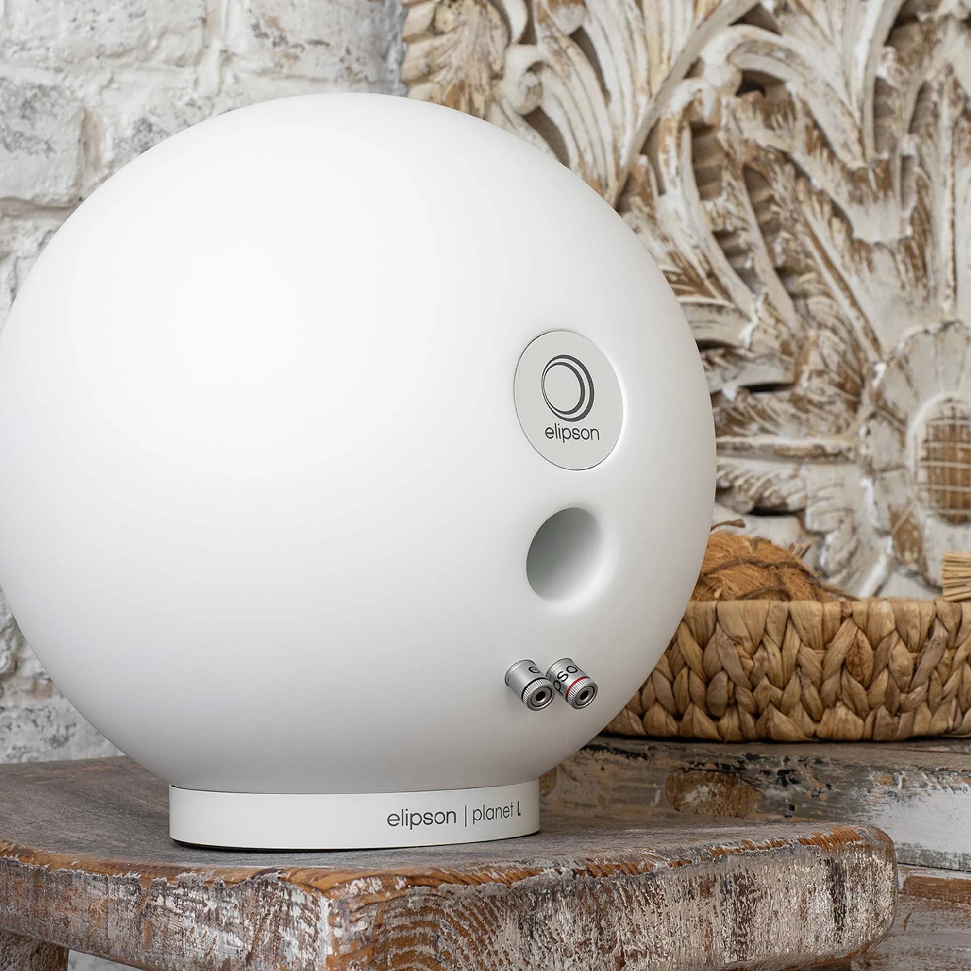 Акустические системы в шарообразных корпусах не являются чем-то совсем уж экзотическим для Hi-Fi-рынка – первые модели подобной формы создавались еще в середине 70-годов прошлого века. Действительно, по многим «звуковым» параметрами корпус в виде шара потенциально превосходит стандартный «ящик», но сегодня лишь немногие компании рискуют браться за изготовление столь непривычно выглядящих колонок. Одной из фирм, серьезно занимающихся разработкой сферической акустики, является французская Elipson. С учетом формы корпуса, такая акустика способна буквально раствориться в звуковой сцене, практически не обнаруживая себя в качестве источника звука. Внутренняя проводка в колонках выполнена качественным акустическим кабелем, а для подключения усилителя служит единственная пара винтовых клемм.