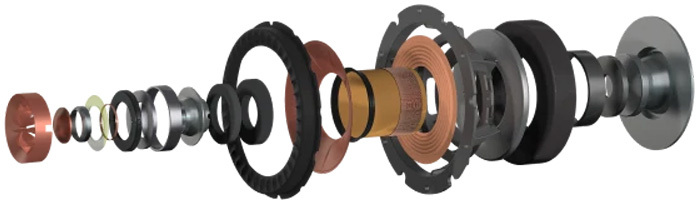- НЧ/СЧ: диффузор из магниево-алюминиевого сплава диаметром 115 мм;