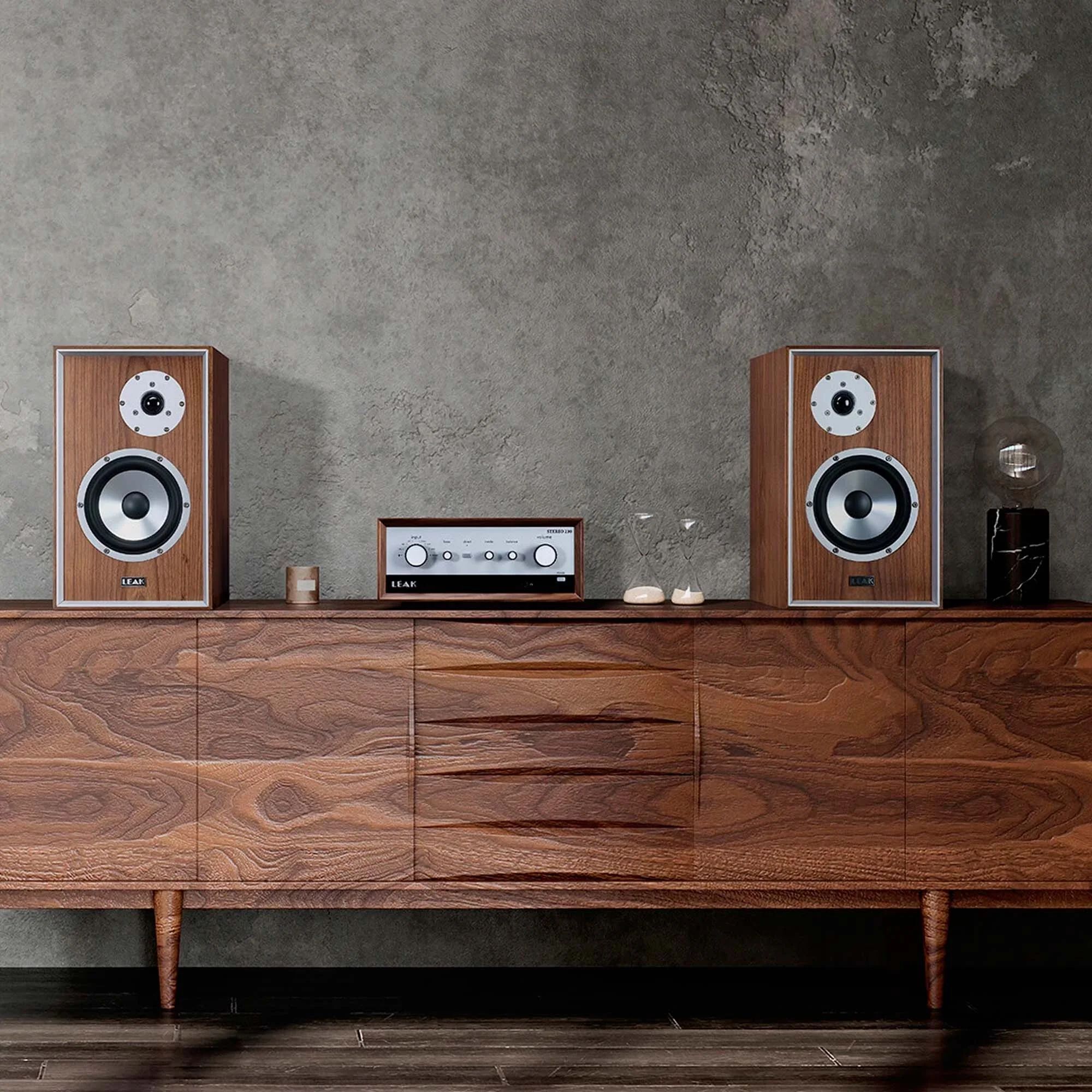 Leak Sandwich 150 сохраняет сдержанный классический стиль, обычно присущий решениям Leak. Корпус, отделанный ореховым шпоном и натуральным деревом, украшен алюминиевой вставкой, подобранной и обработанной в соответствии с теми же стандартами, что и отделка динамиков и материалы диффузора. Ткань гриля специально выбрана в соответствии с классическим стилем Leak и обеспечивает максимальную акустическую прозрачность. Тщательное размещение каждого динамика продумано не только с дизайнерской точки зрения, но и позволяет проецировать по-настоящему точную стереозвуковую сцену.