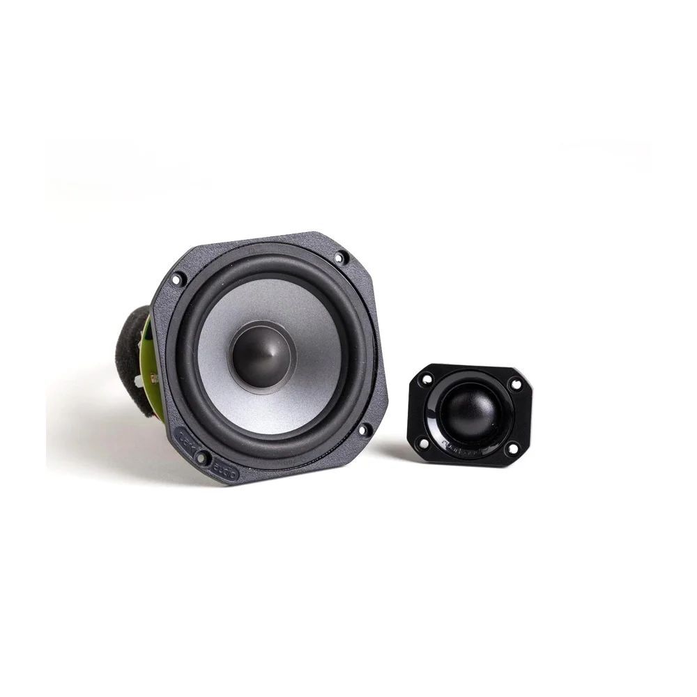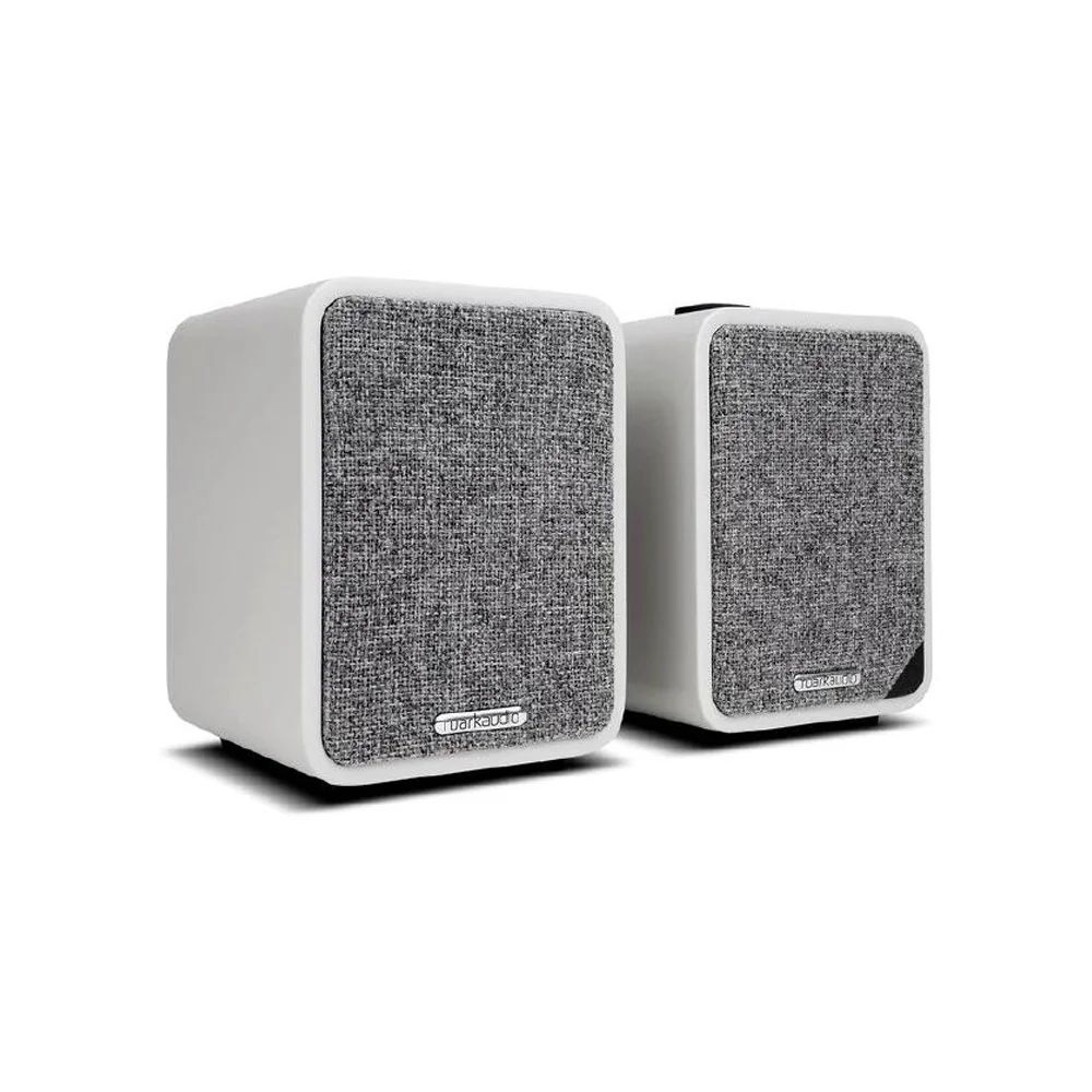 Две колонки из акустической системы Ruark MR1 Mk2 имеют стильный внешний вид и выполнены из качественного дерева. Подключаются они между собой посредством соединительного аудио кабеля, образуя стереопару. Внутри каждой колонки расположен вуфер диаметром 75 мм и твитер на 20 мм. Все динамики обладают магнитным экранированием. Усилитель класса AB расположен в активной колонке, сверху которой имеется регулятор громкости. Входные и выходные порты подключения располагаются на тыльной стороне излучателя.