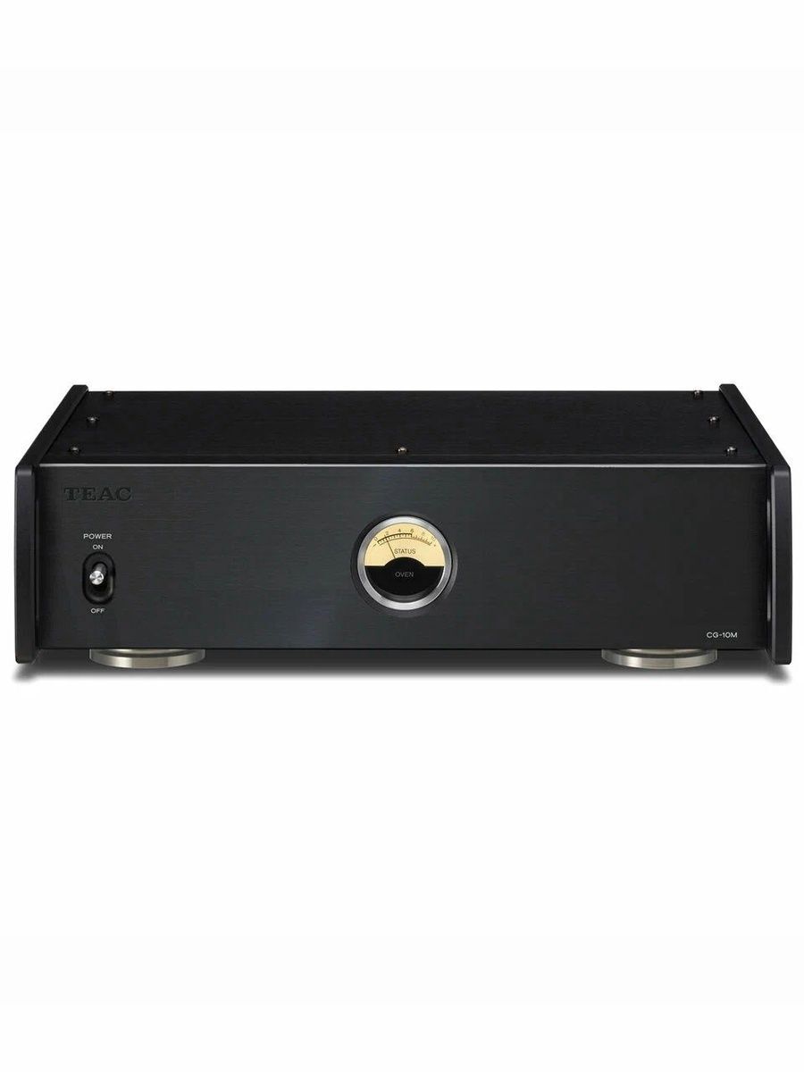 Модель TEAC CG-10M собрана в компактном металлическом корпусе с алюминиевыми панелями. Толстые боковины корпуса имеют характерные миниатюрные ручки, а на фасаде находится круглый стрелочный индикатор состояния кварцевого генератора и включатель питания. Яркость отключаемой подсветки индикатора можно изменить с помощью встроенного в заднюю панель регулятора. В тыл вынесены четыре BNC-выхода для подачи синхросигнала к сетевым стримерам, ЦАПам, SACD-проигрывателям и прочим устройствам, поддерживающим работу с внешним клоком в 10 МГц. Доступно одновременное подключение до четырех компонентов. Под каждый BNC имеется отдельная схема с питанием от тороидального трансформатора и буферным усилителем на выходе, препятствующим изменению волновой формы сигнала. Все схемы полностью изолированы друг от друга с целью устранения перекрестных помех.