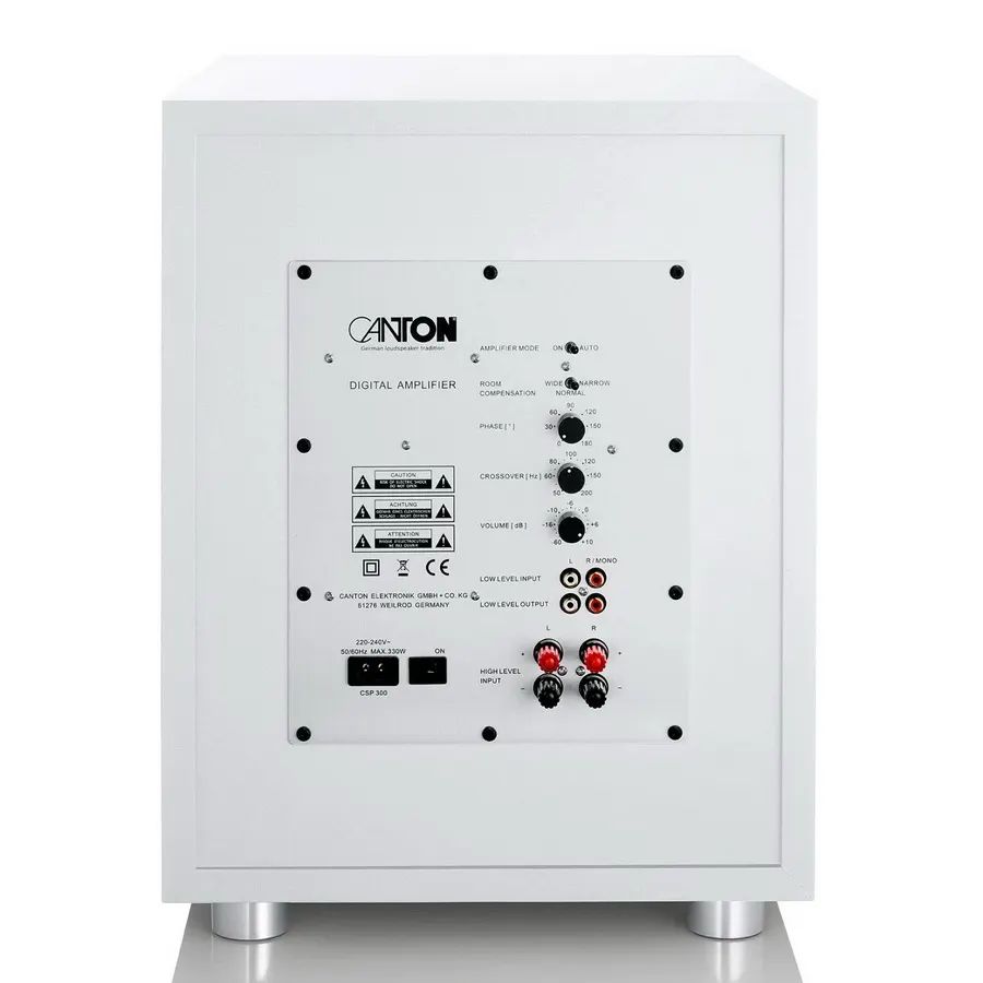 Сетевой кабель снимается, режим работы отображает светодиодный индикатор на фасадной части корпуса. Canton Power Sub 10 оборудован разъёмами низкого и высокого уровня, что открывает широкие возможности для подсоединения к различным устройствам, например, предусилителю, активным колонкам и даже другому сабвуферу для создания мощной звуковой системы.