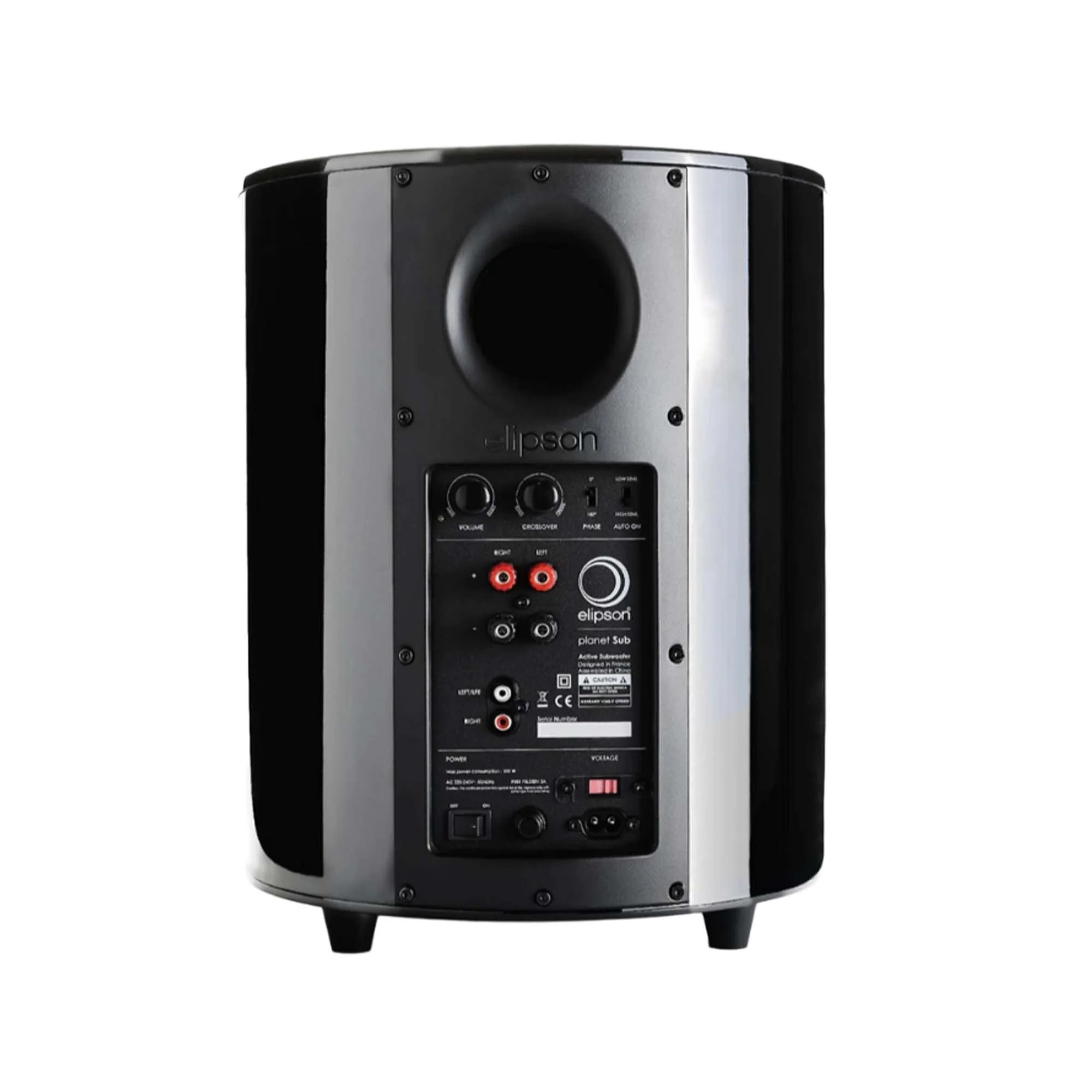 Elipson Planet Sub оснащен винтовыми клеммами для подключения к акустическим выходам усилителя, а также линейными RCA-входами. Предусмотрена возможность регулировки уровня входного сигнала, частоты настройки входного фильтра, изменения абсолютной фазы. При желании сабвуфер можно перевести в режим автоматического включения при появлении сигнала на его входе (с двумя установками чувствительности).