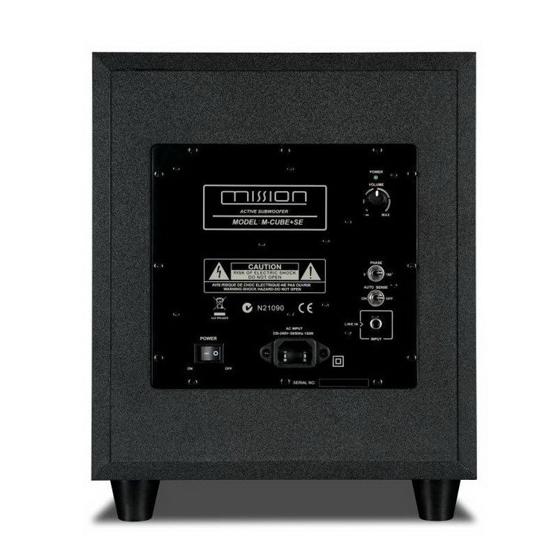Сабвуфер в комплекте Mission M-CUBE + SE оснащен LFE и линейным стереовходом, который продублирован транзитным выходом. Его наличие позволит подключить еще один сабвуфер «по цепочке», например, в случае необходимости озвучить большое помещение. Сабвуфер оснащен стандартным набором органов управления: регуляторами громкости и частоты настройки входного фильтра, а также переключателем абсолютной фазы. Mission M-CUBE + SE оснащен очень полезной функцией автоматического включения при появлении сигнала на входе.