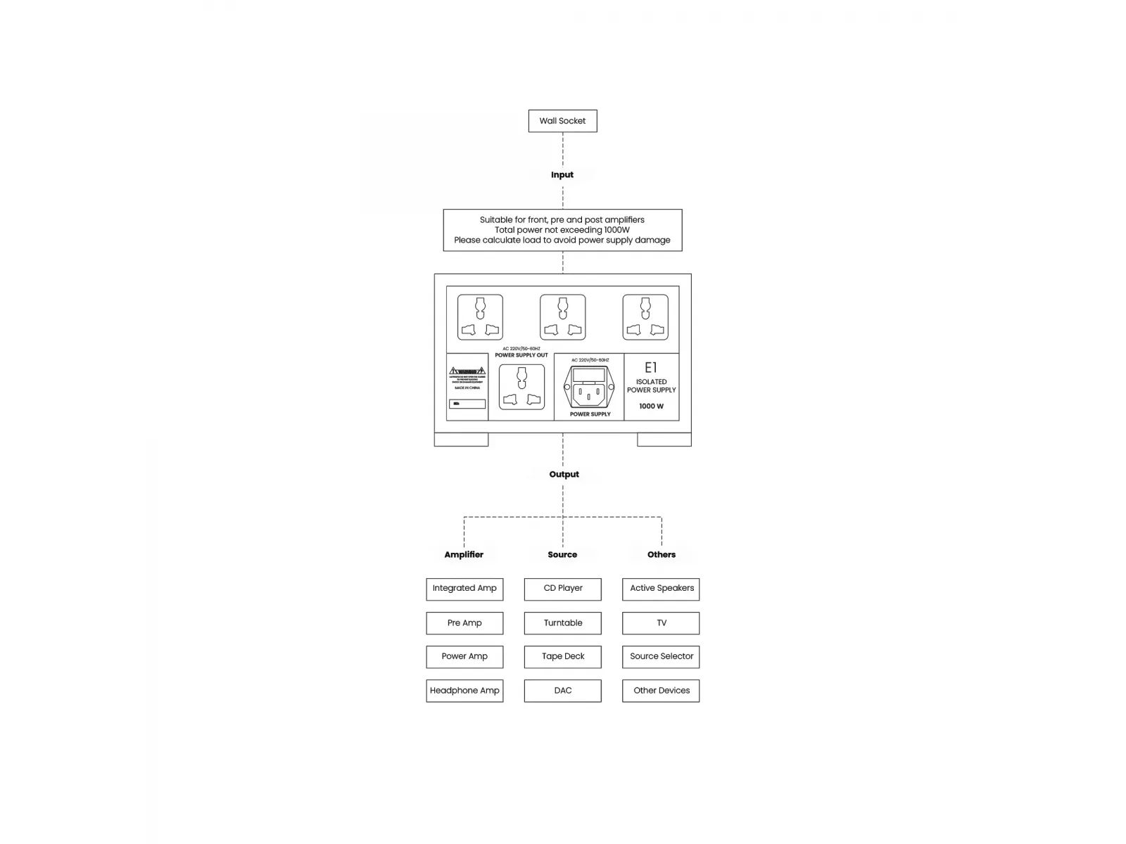 Прочный ручной покраски стальной корпус толщиной 2 мм надёжно экранирует трансформаторы, с другими компонентами. Универсальные розетки подходят для вилок разных стандартов, а оригинальные регулируемые ножки обеспечивают устойчивость и виброизоляцию.