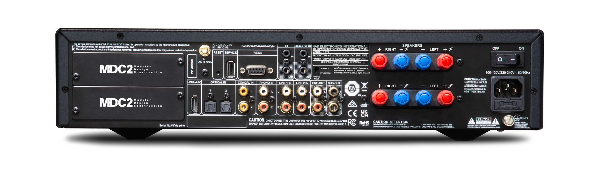 Гибридный цифровой стерео усилитель c модифицированным выходным каскадом UcD и технологией HybridDigital, который обеспечивает 80 Вт непрерывной мощности (4-8 Ом) и впечатляющие 120 Вт динамической мощности при нагрузке 4 Ом. Модульная конструкция второго поколения NAD MDC 2 предоставляет пользователям широкие возможности по модернизации усилителя с помощью новейших аудиовизуальных технологий и дополнительных функций. Среди них — потоковая мультирум трансляция Hi-Res аудио 24 бит/192 кГц с помощью русифицированного приложения BluOS, рум-коррекция Dirac Live, интеграция с Apple AirPlay 2 и двусторонним aptX HD Bluetooth. Габаритные размеры, мм: 435 x 100 x 410. Вес: 9.04 кг (брутто: 10.88 кг). Энергопотребление в режиме ожидания < 0.5 Вт. Цвет: чёрный.