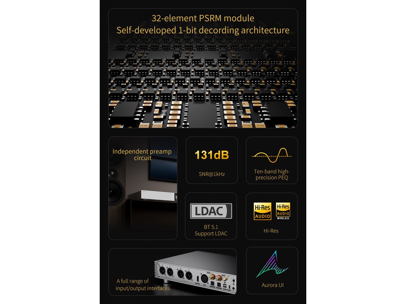 Topping D900 имеет совершенно новую схему преобразования I/V, специально разработанную для высококачественного восстановления звука. Запатентованная схема I/V оснащена интегрированными операционными усилителями с низким уровнем искажений и сверхмалошумящими дискретными компонентами. Это гарантирует, что выходное напряжение модуля PSRM остается безупречным, обещая пользователям захватывающий звуковой опыт.