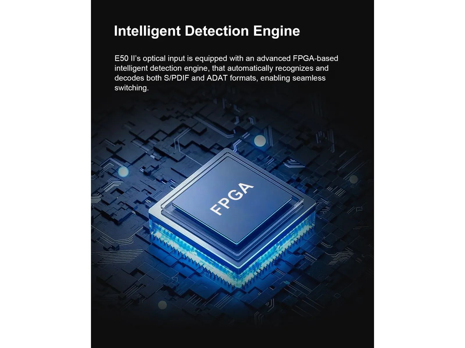 Отличительной особенностью Topping E50 II стало автоматическое детектирование на оптическом входе потоков в формате S/PDIF и ADAT. Благодаря этому новинка подходит не только для чисто Hi-Fi-задач, но и для компактных продакшн-сетапов или музыкантов, подключающих цифровые инструменты. ЦАП самостоятельно определяет входящий формат и соответствующим образом настраивается, без ручного переключения.