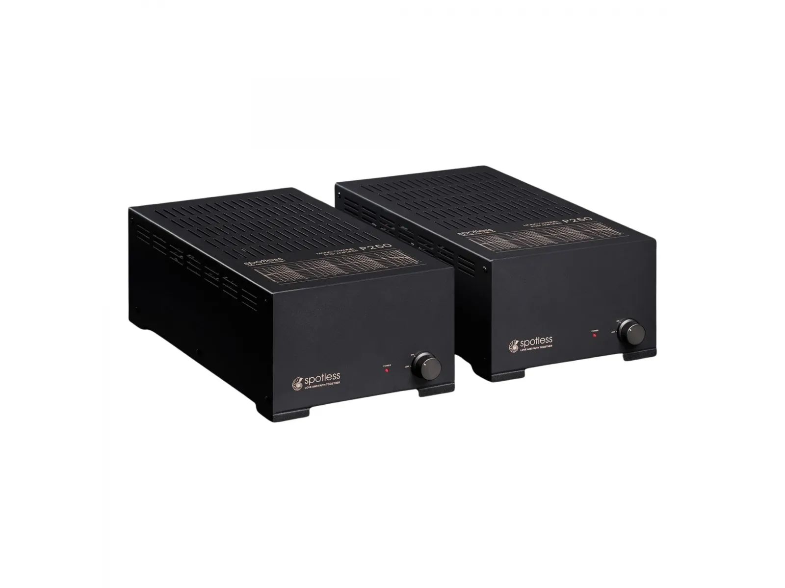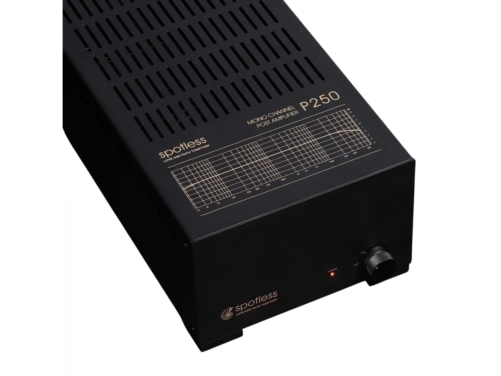 Spotless Audio P250 Monoblock — мощный моноблочный усилитель мощности от бренда Spotless Audio, предназначенный для аудиофилов, ищущих чистый, динамичный и теплый звук с высокой отдачей. Это твердотельный (solid-state) моноблок класса AB, идеально дополняющий ламповый преамп Spotless A для создания элегантного и бескомпромиссного стереосетапа.
