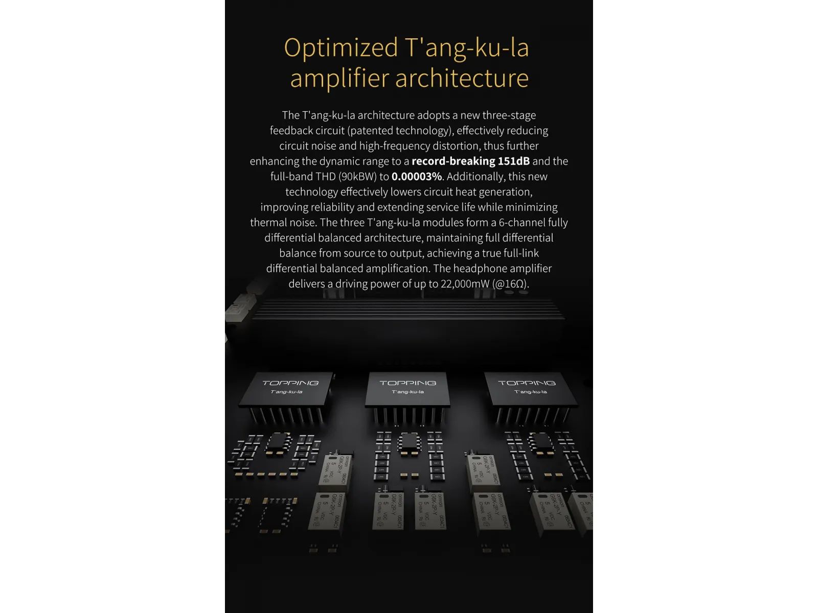 Topping A900 имеет изолированную конструкцию источника питания. Схема цифровой обработки физически изолирована от двух схем аналогового усиления. Это обеспечивает надлежащую подачу питания на различные секции аудиосхемы.