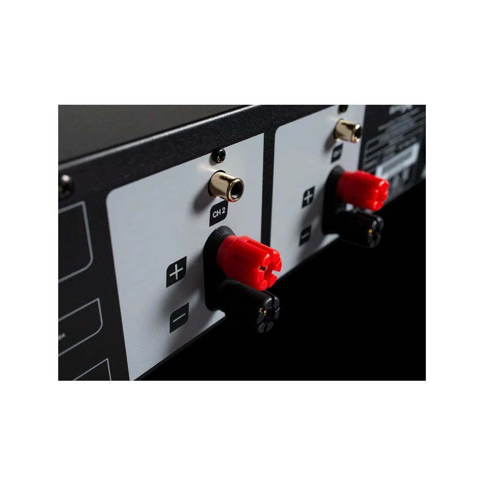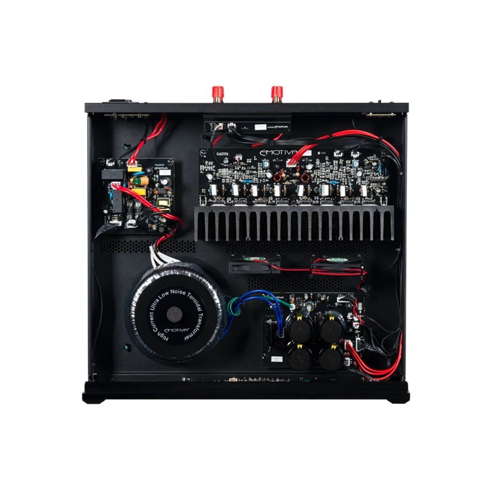 Emotiva BasX A2 представляет собой двухканальный усилитель мощности 160 Вт/канал на 8 Ом и 250 Вт/канал на 4 Ом с номинальным значением КНИ+Ш < 0.02% и отношением сигнал/шум 112 дБ по шкале А. Он имеет массивный встроенный источник питания, высококачественную схему усиления класса A/B, защиту от сбоев, не оказывающую влияние на сигнал, а также триггерные вход и выход. BasX A2 также предлагает функцию автоматического включения при обнаружении аудиосигнала на входе, что особенно удобно, если ваш предусилитель или ресивер не имеет триггерного выхода.