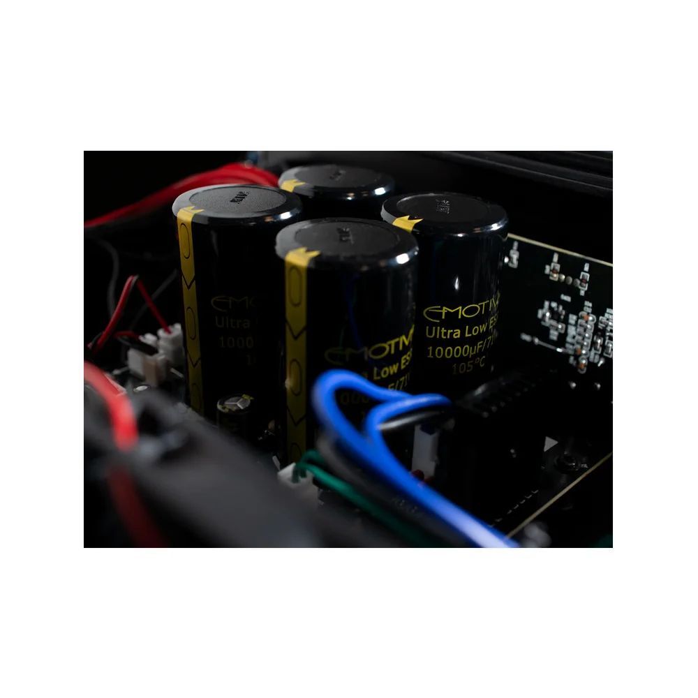 - массивный встроенный источник питания с большим тороидальным трансформатором обеспечивает достаточно сильный ток, чтобы раскачать даже сложную акустику;