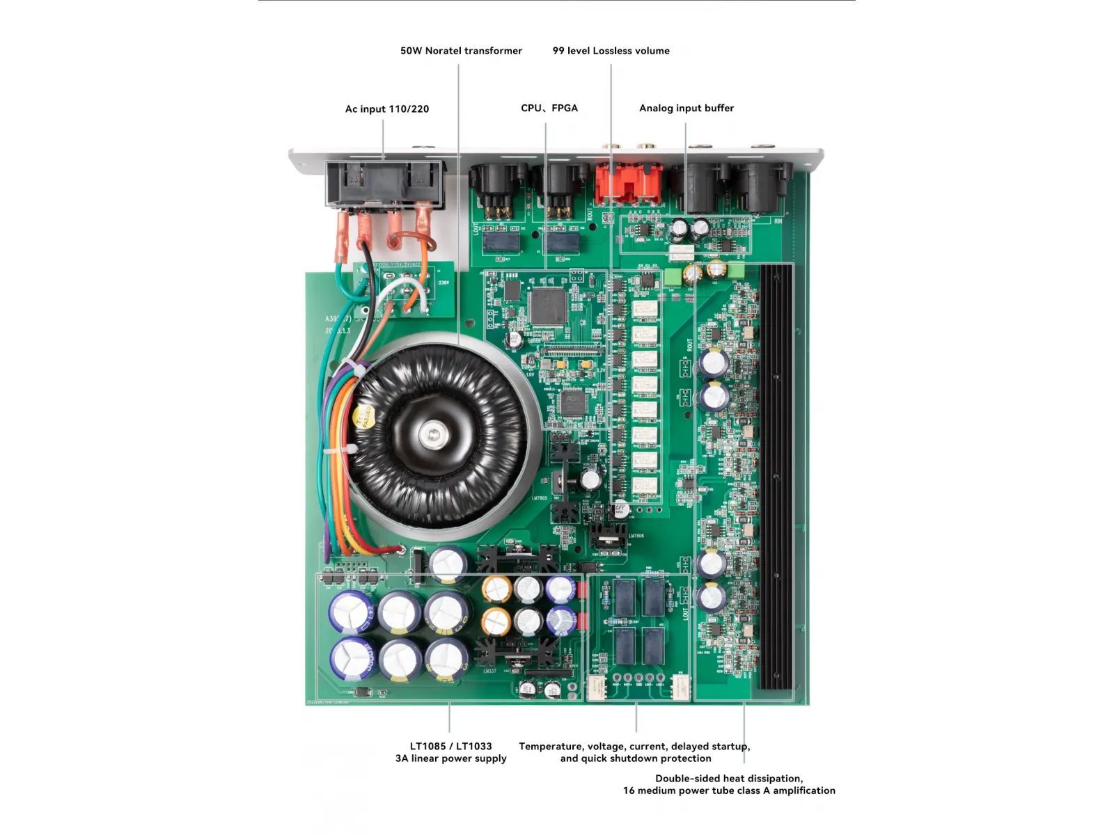 Потеря качества звука из-за потенциометров громкости в усилителях/предусилителях для наушников всегда была постоянной проблемой в традиционном Hi-Fi. В A39 используется система расширения ввода-вывода CPU + FPGA для управления защелкивающимися реле и резисторная сеть R2R для ослабления аудиосигнала. Когда реле включено, оно замыкается на замкнутый контур, не требуя питания, что устраняет электромагнитные помехи. Сеть R2R снижает потери при ослаблении сигнала, обеспечивая чистые и плавные переходы громкости. Высокоскоростной привод позволяет избежать звуковых всплесков, вызванных медленное переключение реле. Благодаря 99 уровням регулировки громкости и буферным схемам ввода/вывода для согласования импеданса, он обеспечивает более высокое входное сопротивление и более низкое выходное сопротивление, что еще больше улучшает совместимость и качество звука.