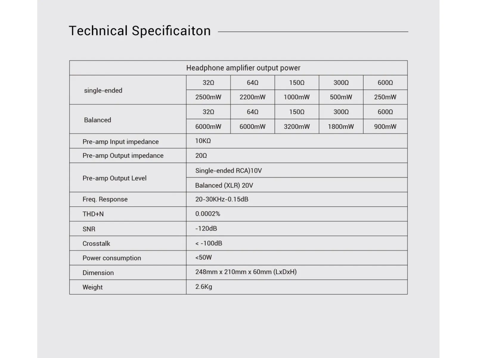 Мощная производительность высокоскоростного процессора также поддерживает расширенные функции, такие как определение переменного напряжения, контроль температуры, защита от перегрузки по току, задержка запуска и защита от быстрого выключения. Он включает в себя режимы с высоким и низким сопротивлением для безопасной и удобной совместимости с широким спектром вкладышей и накладных наушников.