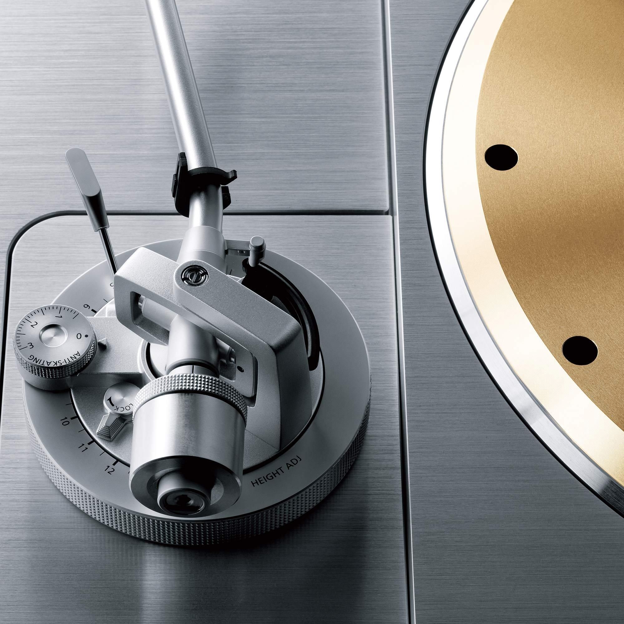 S-образный тонарм в проигрывателе оснащен прецизионными подшипниками и установлен на основании, надежно защищающим его от любых внешних воздействий. Настойка тонарма осуществлялась вручную высококвалифицированными японскими инженерами, и он обладает исключительной плавностью перемещения.