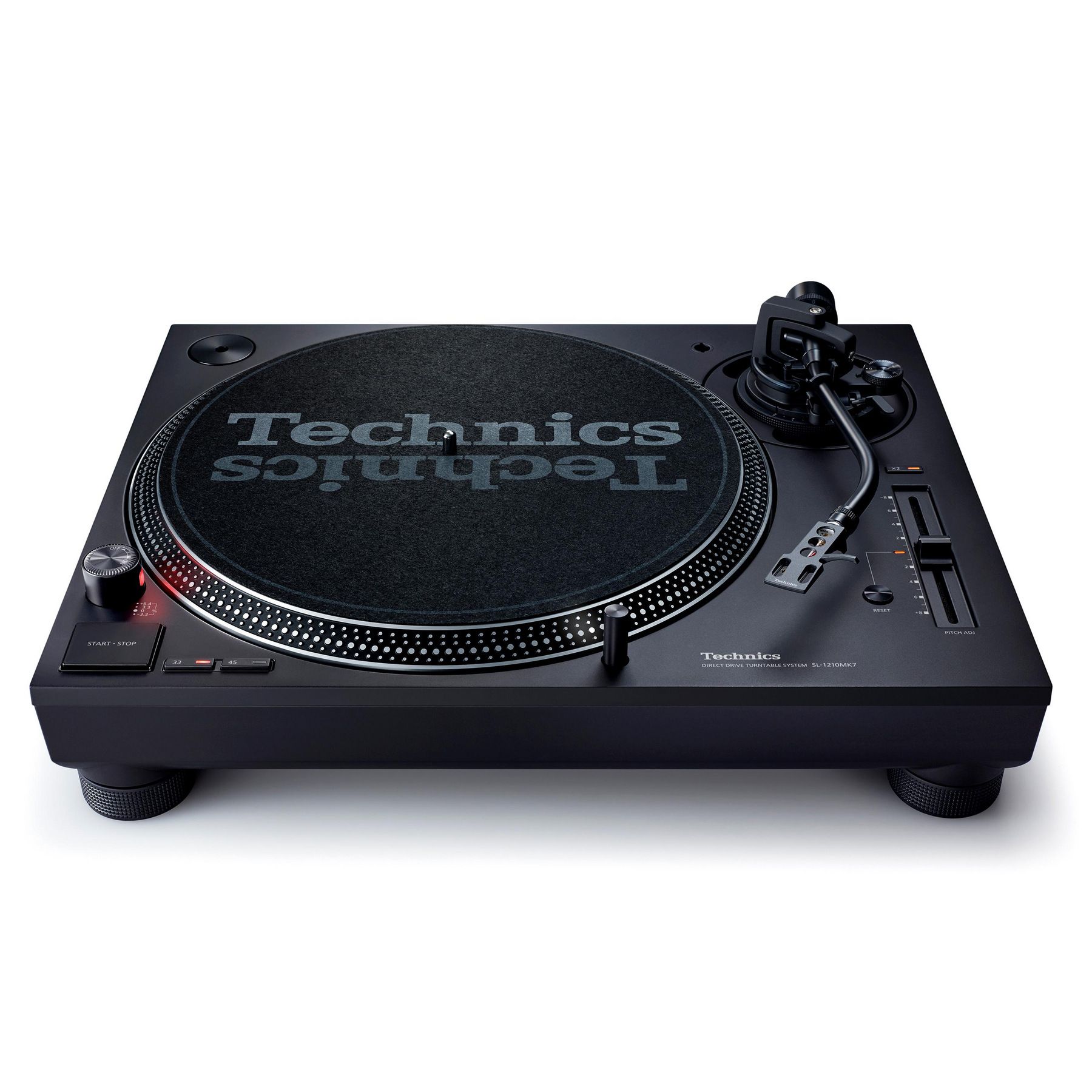 В модели Technics SL-1210 MK7 установлена цифровая схема питч-контроля (плавного изменения скорости вращения диска), работающая в диапазоне ± 8 или 16%, что повышает точность регулировки. Technics SL-1210 MK7 оснащен электронным переключателем скорости 33, 45 или 78 об/мин. Также здесь имеется и удобная подсветка Target Light, которая была впервые применена в модели SL-1210 MK2. Использование для освещения яркого светодиода с белым свечением делает проигрыватель удобным в использовании даже в темных помещениях.